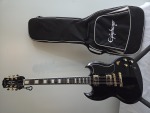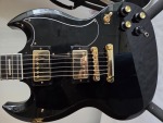 Up for sale is a beautiful Epiphone SG Custom in classic Ebony Black with striking gold hardware. This guitar delivers the iconic SG look and tone with upscale appointments and smooth playability. This instrument is used but in great shape, showing only light signs of handling. The finish still shines nicely, the gold hardware presents well, and it plays exactly as it should. Frets are in excellent condition with plenty of life left. The SG Custom is known for its fast neck profile, comfortable lightweight body, and versatile humbucker tones that can cover everything from classic rock and blues to hard rock and beyond. Specs: Body: Mahogany Neck: Mahogany Neck Profile: SlimTaper Fingerboard: Bound (typically Pau Ferro or Ebony depending on production year) Inlays: Block inlays Pickups: Dual Epiphone humbuckers Controls: 2 Volume, 2 Tone, 3-way toggle switch Hardware: Gold Finish: Ebony (Black) Condition: Overall: Excellent Light cosmetic wear only Frets: Excellent shape Electronics: Fully functional Includes an Epiphone gig bag for protection and easy transport. If you’re looking for a sharp-looking SG with classic tone and stage-ready vibe, this one checks all the boxes.