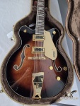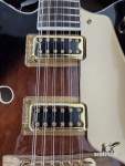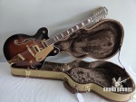 Used – Great Shape • Very little fret wear — neck and frets look great and play smoothly • Clean and well-maintained body with normal light handling marks only • Comes with original tweed Gretsch hard case (not stock case) • All electronics, tuners, and hardware in perfect working order. Key Features & Specifications Body Hollow-body, double-cut design with classic Gretsch styling Gretsch Guitars Body Material: Laminated maple Body Finish: Gloss Bracing: Trestle block for reduced feedback and tighter response F-holes: Bound, oversized for classic tone and resonance Gretsch Guitars Neck & Fingerboard Neck Material: Maple, set-neck construction Neck Shape: Classic “C” profile for comfortable playability Gretsch Guitars Fingerboard: Laurel with pearloid hump block inlays Radius: 12” Fret Count: 22, medium jumbo Scale Length: 24.72” (628 mm) Nut: Graph Tech® NuBone®, ~1.77” (45 mm) width Electronics Pickups: Dual FT-5E Filter’Tron™ humbuckers — lush 12-string chime and punch Controls: • 3-position toggle switch • Volume 1 (neck), Volume 2 (bridge), Master Volume w/ treble bleed, Master Tone Hardware Bridge: Adjusto-Matic™ with secured laurel base Tailpiece: Gretsch® G-cutout Tuning Machines: Sealed die-cast Hardware Finish: Gold Pickguard: Gold plexi with Gretsch/Electromatic logos Strings: Nickel-plated steel .011–.049 Tone & Playability This guitar delivers the classic Gretsch 12-string voice — bright, jangly, and full-bodied with rich harmonic complexity. The hollow body resonates beautifully with both clean and driven amp tones, making it great for rock, country, pop, jangle pop, and layered studio work. Included with Guitar Tweed Gretsch hardshell guitar case (fits 12-string hollow body) Guitar set up and ready for performance Why You’ll Love It Classic Gretsch vibe with modern reliability Filter’Tron pickups give sparkle and clarity Comfortable neck with easy upper-fret access A standout 12-string in both tone and looks